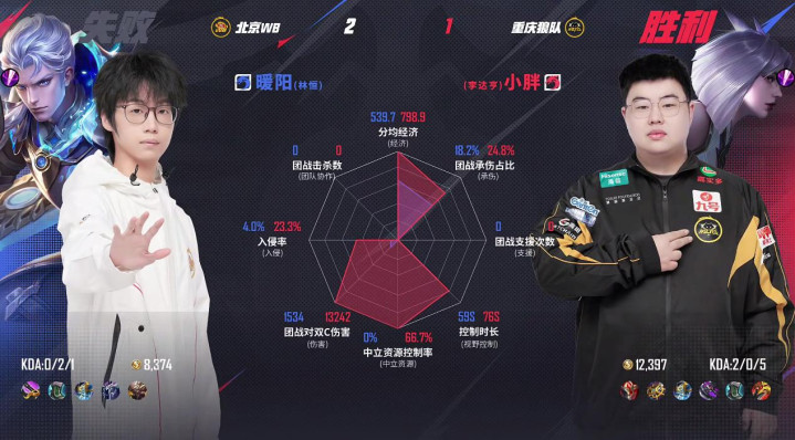 虎扑08月30日讯狼队/WB第3局数据对比:小胖镜数据碾压,完全包围暖阳铠。