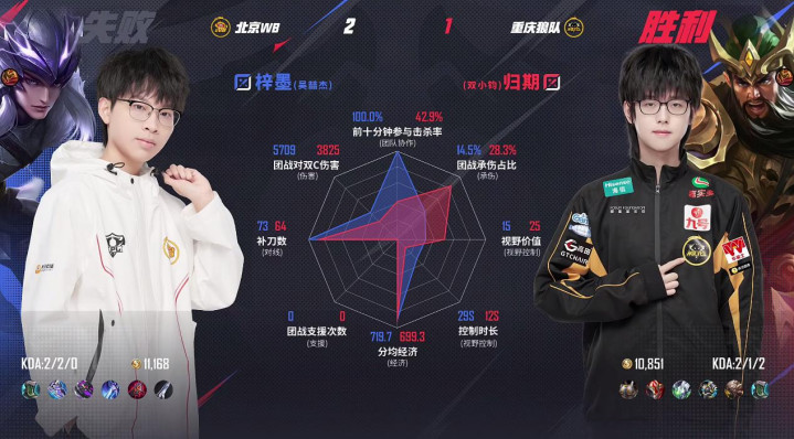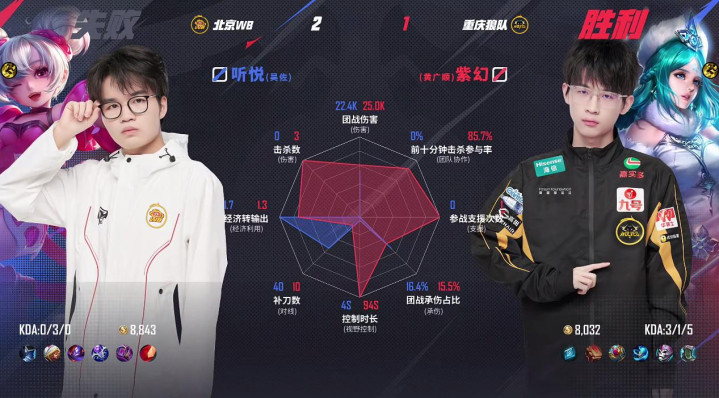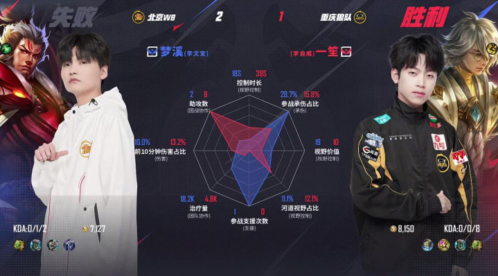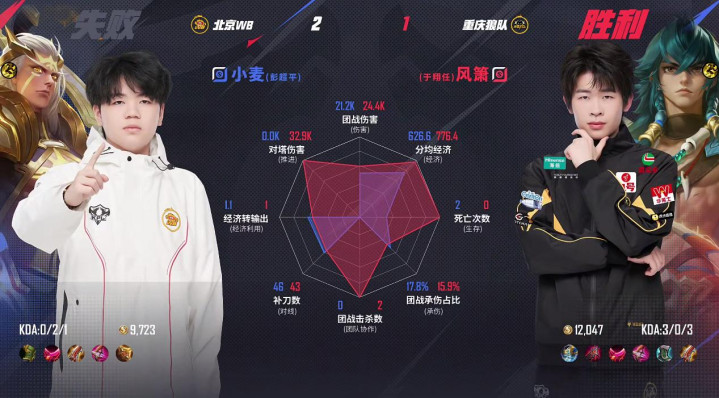 > 狼队/WB第3局数据对比: 小胖镜数据碾压, 完全包围暖阳铠